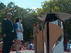 “Καλοσωρίζουμε σήμερα την Ολυμπιακή Φλόγα στη γη των Χίων Ολυμπιονικών. Των Νίκου Σύλλα, Χρήστου Μάντικα, Χαράς Καρυάμη, Αλέξη Αλεξόπουλου” είπε από το βήμα εμφανώς συγκινημένος ο Δήμαρχος Χίου Μάρκος Μεννής καταχειροκροτούμενος από τους εκατοντάδες απλούς ανθρώπους που παρά τον καυτό μεσημεριανό ήλιο γέμισαν την πλατεία.