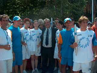 Το σύμβολο του ΑΘΗΝΑ 2004 με το λαμπαδηδρόμο απεικονιζόταν στο αντίδωρο από την Οργανωτική Επιτροπή που παρέδωσε η Διευθύντρια της Ολυμπιακής Λαμπαδηδρομίας Πέννυ Μικελοπούλου.