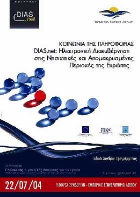 Hμερίδα για την ολοκλήρωση του Ευρωπαϊκού Προγράμματος DIAS.net (Κοινωνία της Πληροφορίας στα Ευρωπαϊκά Νησιά και στις Απομονωμένες Περιοχές) πραγματοποιήθηκε την Πέμπτη 22 Ιουλίου στο Συνεδριακό Κέντρο του Επιμελητηρίου Λέσβου.