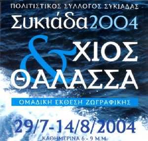 Ο Πολιτιστικός Σύλλογος Συκιάδας εγκαινιάζει την Πέμπτη 29 Ιουλίου 2004 στις 7.00 το απόγευμα, ομαδική έκθεση ζωγραφικής με έργα 10 Χιωτών καλλιτεχνών στην αίθουσα του Συλλόγου.