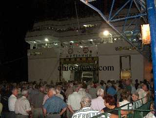 Τους διαδηλωτές υποδέχτηκαν με χειροκροτήματα και οι επιβάτες του ΜΥΤΙΛΗΝΗ που ήταν στο κατάστρωμα. ομως μετά τις 10.10 μ.μ. υπήρξαν ορισμένα φραστικά επεισόδια, κύρια με επιβάτες που περίμεναν να επιβιβαστούν από τη Χίο και είχαν κουραστεί από την πολύωρη ταλαιπωρία. Και σε αυτό το σημείο η Συντονιστική Επιτροπή δεν ήταν αυστηρή και ανθρώπους κυρίως μεγάλης ηλικίας τους άφηναν να περάσουν στο πλοίο.