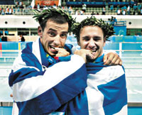 Η Ελλάδα πανηγυρίζει τα πρώτα μετάλλιά της στους 28ους Ολυμπιακούς Αγώνες. Κι αν για πολλούς η επιτυχία του Λεωνίδα Σαμπάνη, ο οποίος κατέκτησε την τρίτη θέση στα 62 κιλά, φάνταζε… δεδομένη, την παράσταση «έκλεψε» το χρυσό μετάλλιο των Θωμά Μπίμη και Νίκου Συρανίδη στον τελικό των 3μ. συγχρονισμένων καταδύσεων.