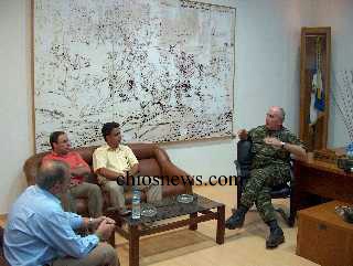 Στα πλαίσια της επίσκεψης που πραγματοποίησε σήμερα ο στρατηγός στη Χίο, συνοδευόμενος από τον αρχηγό της ΑΣΔΕΝ κ. Παναγιώτη Καράμπελα, συναντήθηκε στην Ταξιαρχία με το Νομάρχη Χίου κ. Πολύδωρο Λαμπρινούδη και αντιπροσωπεία του Συνδέσμου Εφέδρων Αξιωματικών κ.κ. Σταμάτη Κάρμαντζη και Μιχάλη Ψώρα στους οποίους και έδωσε την παραπάνω διαβεβαίωση.