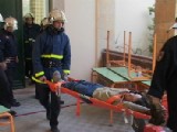 Η άσκηση επιλέχθηκε να γίνει στο 1ο Δημοτικό Σχολείο Βροντάδου, όπου κόπηκαν τα σιδερένια αντικείμενα που είχαν κλείσει την είσοδο του σχολείου, απομακρύνθηκαν αντικείμενα και μεταφέρθηκαν με φορεία οι “τραυματίες”, τους οποίους και παρέλαβαν τα ασθενοφόρα του Σκυλίτσειο Νοσοκομείου.
