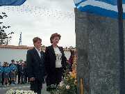 Η Αγγελική Παναγυφτοπούλου συγκινημένη καθ’ όλη τη διάρκεια της τελετής, μαζί με το 13χρονο γιο τους Παναγιώτη, ευχαριστεί όλους τους Χιώτες γιατί δείχνουν πως δεν ξέχασαν τη θυσία του άντρα της.