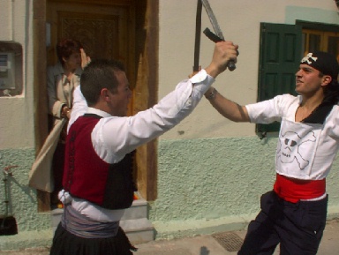 Την Τυρινή Κυριακή κατεβαίνει η «Μόστρα», όπου στα στενά σοκάκια των Θυμιανών οι «βρακάδες» διασταυρώνουν τα ξίφη τους με τους πειρατές.