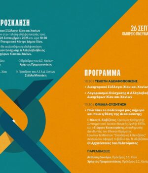 Εκδήλωση αδελφοποίησης των Δικηγορικών Συλλόγων Χίου και Χανίων θα πραγματοποιηθεί την Παρασκευή 26 Σεπτεμβρίου στο ΟΜΗΡΕΙΟ.