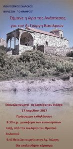Ο Σύλλογος και το Εκκλησιαστικό Συμβούλιο, καλούν όλους τους φίλους της Βολισσού στις εκδηλώσεις επαναλειτουργίας του Ναού.