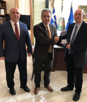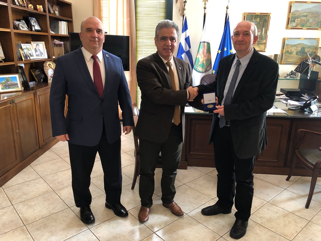 Ο Δήμαρχος καλωσόρισε τον νέο Γενικό Γραμματέα, προσφέροντάς του το επετειακό μετάλλιο του Δήμου για τα 200 χρόνια από την Ελληνική Επανάσταση.