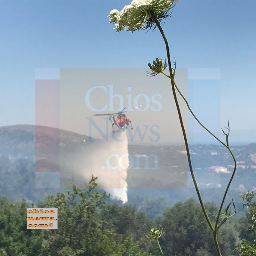 Καθοριστική η βοήθεια από αέρος, με 2 πυροσβεστικά αεροσκάφη να πετούν πολύ χαμηλά για να μπορέσουν να σβήσουν τη φωτιά και 3 πυροσβεστικά ελικόπτερα, ενώ παρέμενε ως εφεδρεία το 4ο που μετέφερε στη Χίο τη δύναμη της ΕΜΑΚ Αθηνών.