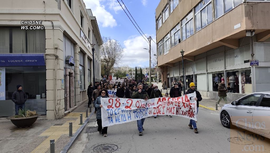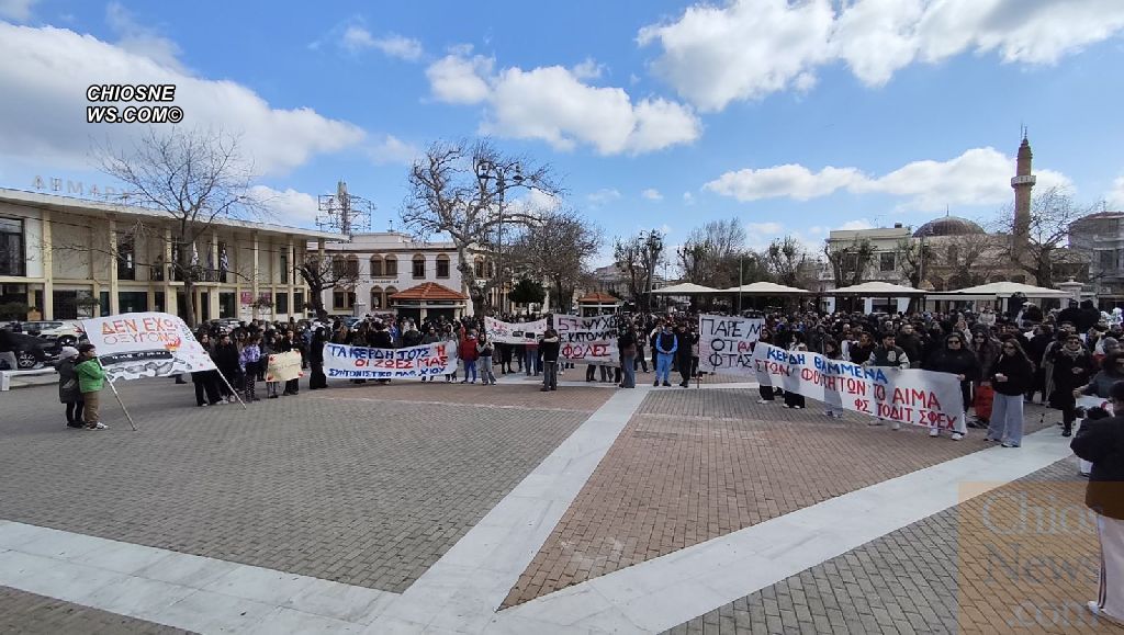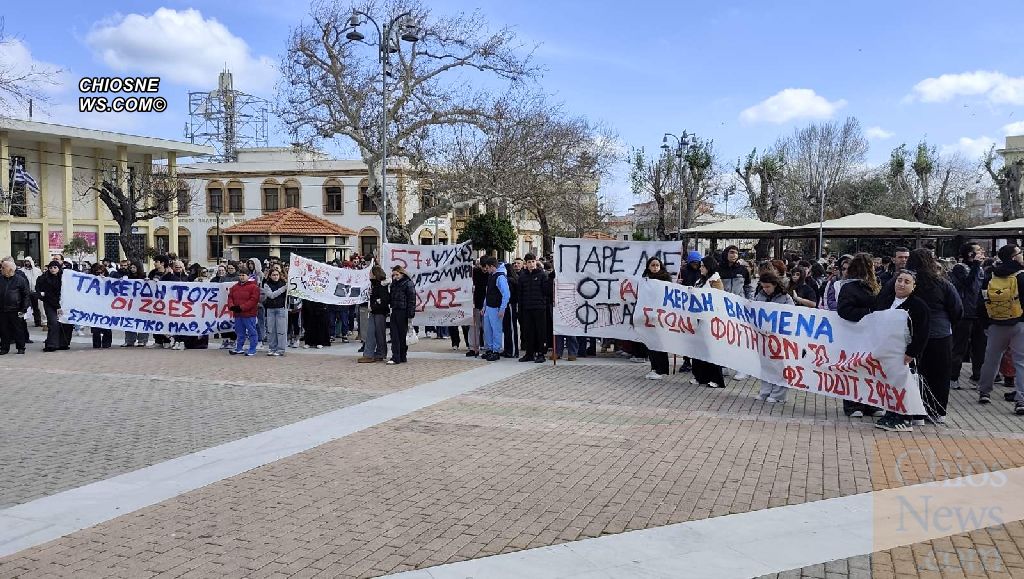 Κυρίαρχο σύνθημα και στη Χίο «τα κέρδη τους ή οι ζωές μας», σε μια συγκέντρωση που είχε παλμό, δυναμική και μεγάλη συμμετοχή κόσμου, κυρίως νέων παιδιών που ξεχώρισαν και με τα πανό τους.