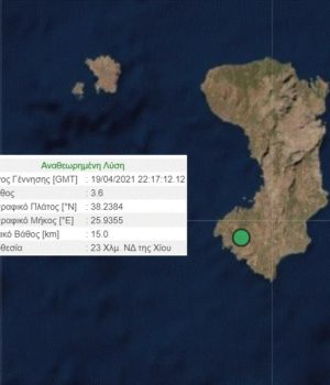 Η δόνηση έγινε αισθητή και στην πόλη της Χίου.