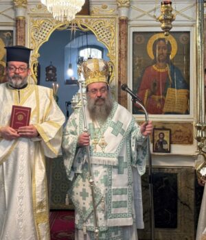 “Στην προσλαλιά του, ο Σεβασμιώτατος Μητροπολίτης Χίου κ. Μάρκος αναφέρθηκε διεξοδικά στο Μυστήριο της Ιεροσύνης, στον αγώνα και την μαρτυρία των Κληρικών πάλαι τε και σήμερον εν τω κόσμω, στη μνήμη των Αγίων της Μικράς Ασίας (εκ της οποίας έλκει την καταγωγή και ο σήμερον τιμώμενος Άγιος Τρύφων) και στον ιερό δεσμό της οικογένειας που ο Θεός επροίκισε τον άνθρωπο, δημιουργώντας αυτόν “άρσεν” και θήλυ”, καθιστώντας τα μοναδικά αυτά δύο φύλα σε πατέρα και μητέρα αντίστοιχα».