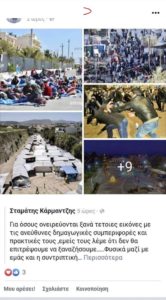 Στον πανικό του και εκτελώντας τις εντολές των «φίλων» με το σκονάκι που του έδωσαν, μας εμφανίζει τις εικόνες από την πόλη της Χίου προ ΒΙΑΛ. (Οι «φίλοι» του υποβολείς μη γνωρίζοντας την Χίο, τον εξέθεσαν δίνοντας του να αναρτήσει όπως και έπραξε και φωτογραφίες από τη Μόρια και τον Πειραιά!).