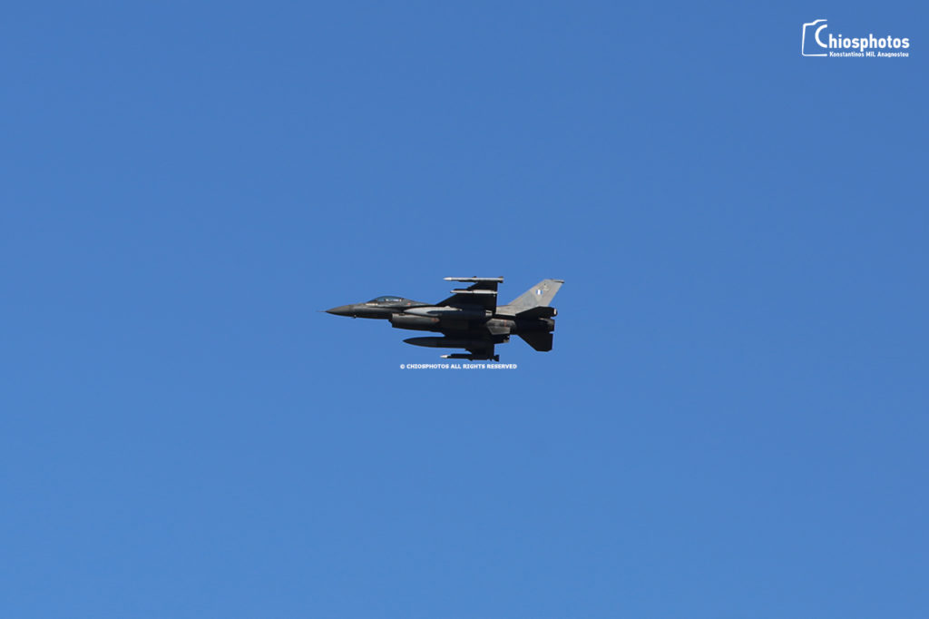 Δύο ελληνικά μαχητικά αεροσκάφη F -16 πραγματοποίησαν χαμηλές πτήσεις για αρκετή ώρα, πάνω από την πόλη της Χίου το μεσημέρι της Παρασκευής 13/3/2020.