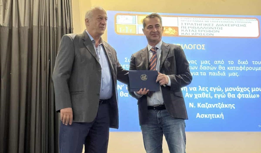 Μετά το πέρας της εκδήλωσης, ο Δήμαρχος Χίου Γιάννης Μαλαφής απένειμε τιμητική πλακέτα στον Δρ. Βασίλειο Μαρτζακλή, εκφράζοντας τις θερμές του ευχαριστίες για τη συμβολή του στην επιμόρφωση του προσωπικού και στην ενίσχυση της ετοιμότητας του Δήμου Χίου.