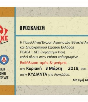 Η εκδήλωση διοργανώνεται από το παράρτημα Χίου ΠΕΑΕΑ-ΔΣΕ.