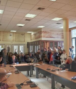 Το μεσημέρι της περασμένης Παρασκευής, 12 Δεκεμβρίου, με πρωτοβουλία της ΕΛΜΕ Χίου, πραγματοποιήθηκε συγκέντρωση διαμαρτυρίας έξω από το Δημαρχιακό Μέγαρο και ακολούθησε συνάντηση- συζήτηση με τον Δήμαρχο Χίου, στην κατάμεστη αίθουσα του Δημοτικού Συμβουλίου.