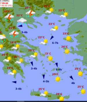 Επισημαίνεται ότι τα φαινόμενα κατά τόπους στην Κεντρική Μακεδονία (κυρίως στην Πιερία, Χαλκιδική και το Θερμαϊκό), τη Θεσσαλία, τις Σποράδες και την Εύβοια θα είναι ιδιαιτέρως ισχυρά.