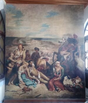 Αυτό το αντίγραφο της Σφαγής της Χίου του Ντελακρουά εκτίθεται στον προθάλαμο του Βυζαντινού Μουσείου Χίου