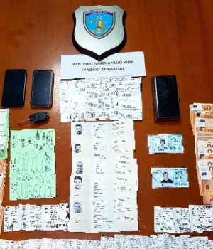 Επίσης, υπέδειξαν τον 55χρονο οδηγό του Ι.Χ.Ε. οχήματος ως το άτομο που είχε αναλάβει να τους προμηθεύσει με τα έγγραφα και να διευκολύνει τη μεταφορά τους στην ενδοχώρα, ενώ στην κατοχή του 55χρονου βρέθηκαν ακόμα 2 πλαστά δελτία αιτούντος Διεθνής Προστασία, δύο κλεμμένα δελτία αστυνομικής ταυτότητας, το χρηματικό ποσό των χιλίων πεντακοσίων (1.500€) ευρώ, καθώς και πληθώρα αποκομμάτων ακτοπλοϊκών εισιτηρίων.