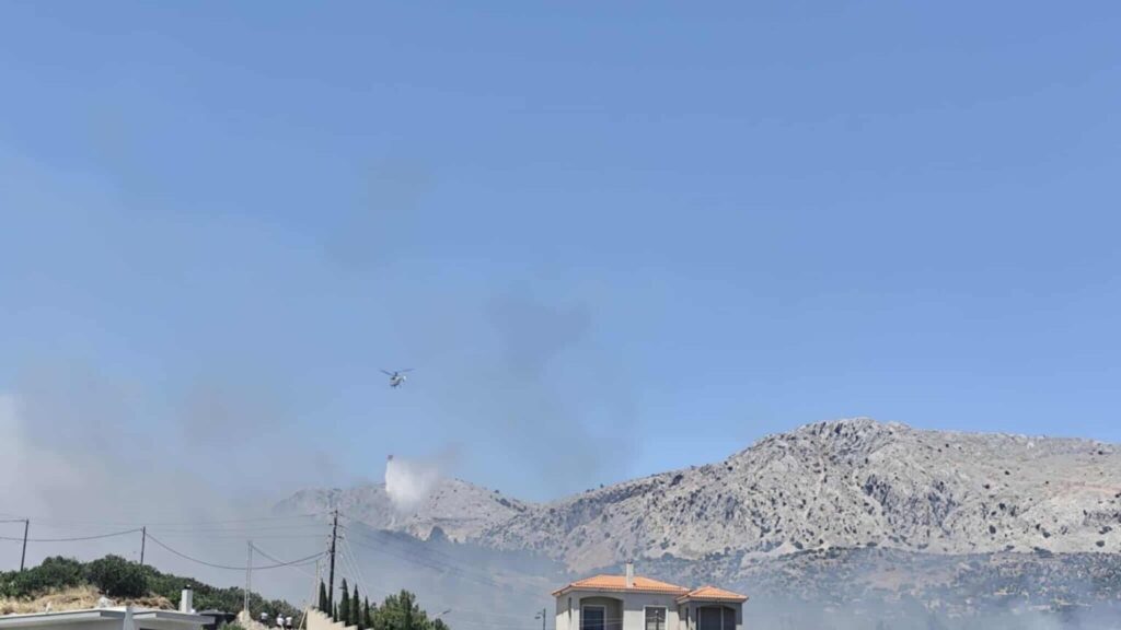 Η φωτιά καίει χορτολιβαδική έκταση, ενώ δεν κινδυνεύουν σπίτια λόγω της φοράς των ανέμων που είναι πολύ ισχυροί. Κατευθύνεται προς το λόφο του Αγίου Δημητρίου, όπου υπάρχουν και τμήματα πευκοδάσους. Παράλληλα έχει εκδηλωθεί και δεύτερο μέτωπο φωτιάς στην περιοχή Κορακάρη.