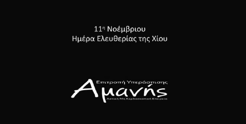 Με αφορμή την επέτειο της Απελευθέρωσης της Χίου (11 Νοεμβρίου 1912) και τον φετινό εορτασμό των Ελευθερίων, η Επιτροπή Υπεράσπισης Αμανής παρουσιάζει ένα μικρό φιλμ διάρκειας 2,5 λεπτών, αφιερωμένο στην ελευθερία του τόπου και των ανθρώπων της Αμανής.