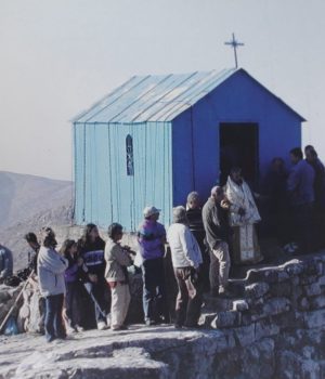 Στα 1.297μ. του Πελινναίου όρους, όπου βρίσκεται το εκκλησάκι της Αγίας Τριάδας, κατασκευασμένο από λαμαρίνες κ δεμένο με συρματόσκοινα στους βράχους για να μην το πάρει ο αέρας.