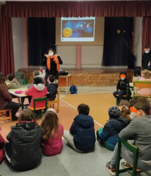 “Είναι η δεύτερη φορά που μας επισκέπτεται καθώς το 2018 είχε υλοποιήσει με μαθητές και γονείς το βιωματικό πρόγραμμα “Μαγειρεύοντας κομήτες”.
