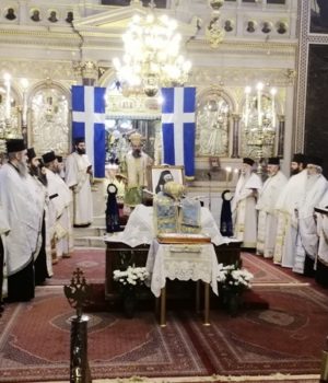 Προσήλθομεν λοιπόν σήμερον άπαντες εις τον Ιερόν τούτο και περικαλλή Μητροπολιτικόν Ναόν, αφ ένος μεν δια να τιμήσωμεν την μνήμη των σήμερον εορταζομένων Αγίων, αφ ετέρου δε δια να προσευχηθώμεν διά τον στοργικόν Πατέρα και Ποιμενάρχη ημών. Δι εκείνων ο οποίος υπήρξεν ψυχή τε και σώματι ένθερμος υπερασπιστής του ευσεβούς Έθνους ημών και του Φιλοχρίστου Στρατού, τον οποίον εξαιρέτως υπερηγάπα, αφού ήτο οστούν εκ των οστέων του και σάρξ εκ της σαρκός του,δια τον ακλόνητον φρουρόν των της Εκκλησίας δογμάτων και απαρασάλευτον τηρητήν της πίστεως. Δια τον της νεότητος φίλον, δια τον του γήρατος στερρόν στηριγμόν, δια τον της αγωνίας του ανέργου συμμεριστήν, δια τον του καθ οιονδήποτε τρόπον χειμαζομένου ανθρώπου υποστηρικτήν.