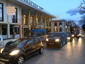 Κατά την έναρξη της συνεδρίασης του Δημοτικού Συμβουλίου πολίτες με εκατοντάδες αυτοκίνητα, μαύρες σημαίες και με συνεχή κορναρίσματα, πραγματοποίησαν μια μεγάλη συγκέντρωση στο κέντρο της πόλης, περικυκλώνοντας για αρκετή ώρα το πολύγωνο μέσα στο οποίο βρίσκεται το Δημαρχιακό Μέγαρο Χίου και ενώ ισχυρή αστυνομική δύναμη βρισκόταν προς φύλαξη του Δημαρχείου, χωρίς να χρειαστεί σε κάτι η παρουσία της.