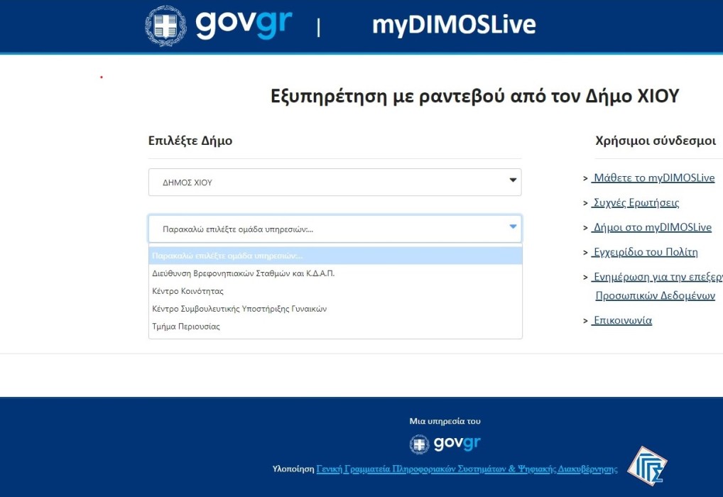 Για προγραμματισμό ραντεβού, πληκτρολόγηση του URL: https://mydimos.live.gov.gr και είσοδο με κωδικούς TAXISnet.