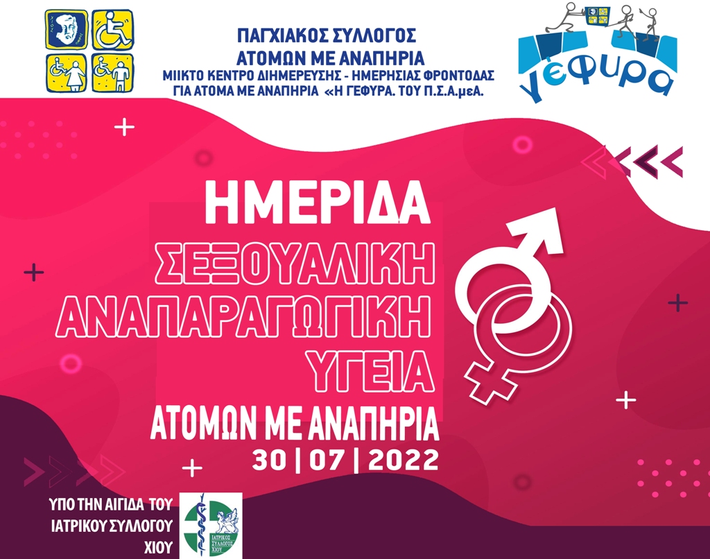 Επιστημονική ημερίδα με θέμα την « Σεξουαλική/Αναπαραγωγική Υγεία Ατόμων με Αναπηρία» διοργανώνει το «Μικτό Κέντρο Διημέρευσης-Ημερήσιας Φροντίδας για ΑμεΑ «Η Γέφυρα» σε συνεργασία με τον Παγχιακό Σύλλογο ΑμεΑ.
