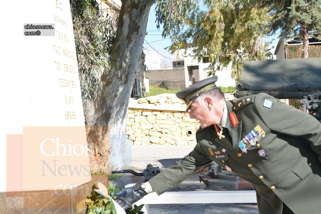 Ο απερχόμενος Διοικητής, Ταξίαρχος Εμμανουήλ Χατζής παρέδωσε στο νέο, Ταξίαρχο Χαράλαμπο Αμπατζίδη, την «στρατιωτική διοίκηση της Χίου, των Ψαρών, των Οινουσσών, της Παναγιάς, του Βάτου και 41 ακόμα βραχονησίδων και μικρονησίδων», τονίζοντας πως είναι πάντα έτοιμο το δυναμικό της να ανταποκριθεί στην εμπιστοσύνη που περιβάλλει ο ελληνικός λαός τον στρατό ξηράς έχοντας ως γνώμονα τη ρήση «και ιερά τα πάτρια τιμήσω».