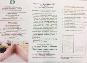 Για όλους τους παραπάνω λόγους, αλλά κυρίως ανταποκρινόμενοι στο καθήκον Ιστορικής Μνήμης και Τιμής, ως Περιφερειακή Ενότητα στη ναυτομάνα Χίο τιμούμε εδώ και χρόνια τους ηρωικούς ναυτικούς μας, οργανώνοντας ειδικές εκδηλώσεις την 1η Σεπτεμβρίου κάθε έτους, ημερομηνία έναρξης του Δευτέρου Παγκοσμίου Πολέμου.