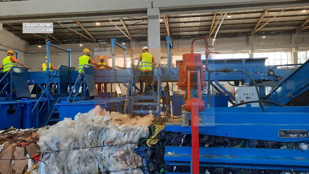 Τα εγκαίνια του Κέντρου διαλογής Ανακυκλώσιμων Υλικών του Δήμου Χίου, πραγματοποιήθηκαν παρουσία του Γενικού Γραμματέα Διαχείρισης Αποβλήτων του Υπουργείου Περιβάλλοντος και Ενέργειας Μανώλη Γραφάκου.