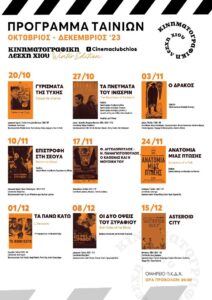 Η Κινηματογραφική Λέσχη Χίου προσκαλεί στην προβολή της ΠΑΡΑΣΚΕΥΗΣ 24-11-2023 κ ώρα 8.30 μ.μ. στο Ομήρειο Π.Κ.Δ.Χ.: