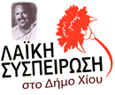 Η ΛΑΪΚΗ ΣΥΣΠΕΙΡΩΣΗ Χίου απευθύνει αγωνιστικό χαιρετισμό, συγχαίρει και ευχαριστεί από τα βάθη της καρδιάς, όλες και όλους, που μέσα σε ένα κλίμα ρουσφετιών, εκβιασμών, πιέσεων, ψευτοδιλημμάτων και αυταπατών, προερχόμενων από τις άλλες παρατάξεις, που στηρίζονταν από τη ΝΔ το ΠΑΣΟΚ, ή το ΣΥΡΙΖΑ , άντεξαν και τίμησαν την παράταξή μας, δικαιώνοντας τους αγώνες μας και την παρουσία μας μέσα στο κίνημα και στο δημοτικό και περιφερειακό συμβούλιο.