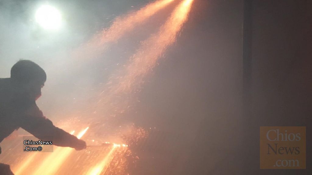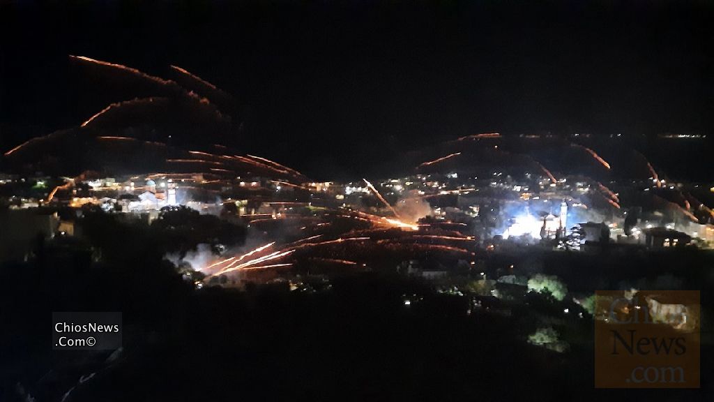 Φαντασμαγορικός ο ρουκετοπόλεμος στο Βροντάδο της Χίου συνόδευσε το μήνυμα του «Χριστός Ανέστη».