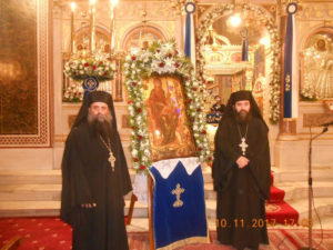 Το πρωί της Παρασκευής, 10 Νοεμβρίου, ο Μητροπολίτης Χίου υποδέχθηκε στον πανηγυρίζοντα Ι. Μ. Ναό τη θαυματουργή βυζαντινή εικόνα της Παναγίας «Ἄνωθεν οἱ Προφῆται», που μεταφέρθηκε με στρατιωτικό όχημα από τον Ι.Ν. Αγίας Τριάδας του χωριού Ελάτα.