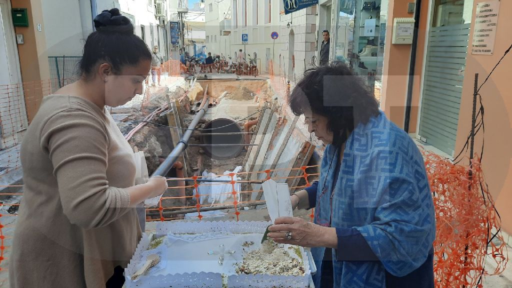 Έκοψαν τούρτα και μοίρασαν… κόλλυβα οι καταστηματάρχες της οδού Ψυχάρη, στο κέντρο της πόλης της Χίου. Δίπλα στο εργοτάξιο για το αντιπλημμυρικό έργο, που εδώ και ένα χρόνο έχει δημιουργήσει σοβαρά προβλήματα επιβίωσης των επιχειρήσεων τους, πρόβαλαν προς τα έξω τα σημαντικά προβλήματα που αντιμετωπίζουν.