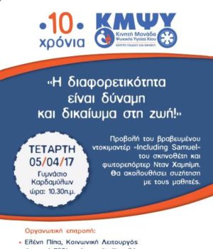 Η Κινητή Μονάδα Ψυχικής Υγείας Χίου της Αστικής Μη Κερδοσκοπικής Εταιρείας, Κέντρο Παιδιού και Εφήβου, με αφορμή την συμπλήρωση 10 ετών λειτουργίας, υλοποιεί μια σειρά ανοιχτών εκδηλώσεων προς το κοινό καθ΄όλη τη διάρκεια του έτους, σε όλο το νομό της Χίου, στα Ψαρά και στις Οινούσσες.