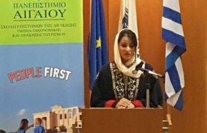 Με ιδιαίτερη λαμπρότητα πραγματοποιήθηκε την Πέμπτη 18/7 η αναγόρευση της Aysha Mohammed Saeed Fadila Alhameli από τα Ηνωμένα Αραβικά Εμιράτα σε Επίτιμη Διδακτόρισσα του Τμήματος Οικονομικής και Διοίκησης Τουρισμού της Σχολής Επιστημών της Διοίκησης του Πανεπιστημίου Αιγαίου, αναγνωρίζοντας το εξαιρετικό έργο της στις διεθνείς αερομεταφορές και τη συμβολή τους στη διεθνή οικονομική και τουριστική ανάπτυξη.