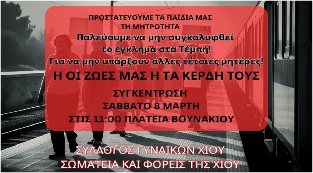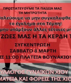 Χιώτες και Χιώτισσες στη συγκέντρωση στις 11.00 το πρωί, στην πλατεία Βουνακίου, το Σάββατο 8 Μαρτίου, ανήμερα της ημέρας της Γυναίκας!