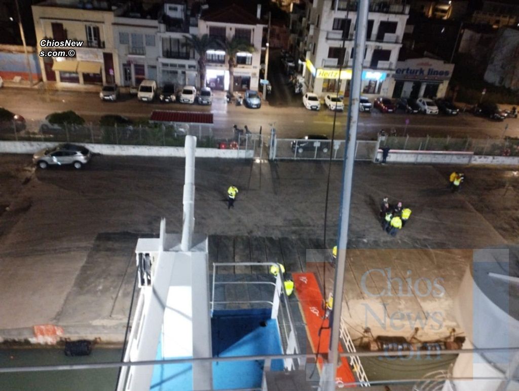 Την ώρα της πρόσδεσης στο λιμάνι της Χίου, βρήκε το Ε/Γ-Ο/Γ πλοίο ΝΗΣΟΣ ΡΟΔΟΣ το μπουρίνι που «πέρασε» περί τις 9.30 με 10.00 το βράδυ της Δευτέρας από την πόλη της Χίου.