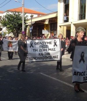 Ντυμένοι στα μαύρα και έχοντας κάνει πανό την εικόνα με τα καμένα Άμφια στην Άγια Τράπεζα της εκκλησιάς του Αγίου Χαραλάμπους καθώς και με πανό με σύνθημα «θέλουμε πίσω τη ζωή μας και την κανονικότητά μας», παρέλασαν γυναίκες και άνδρες από το χωριό Χαλκειός.