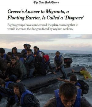 Η εφημερίδα New York Times αναφέρεται στην απόφαση της ελληνικής κυβέρνησης να τοποθετήσει πλωτά φράγματα κατά μήκος των θαλάσσιων συνόρων με την Τουρκία, για να αποτρέψουν τις προσφυγικές και μεταναστευτικές ροές.