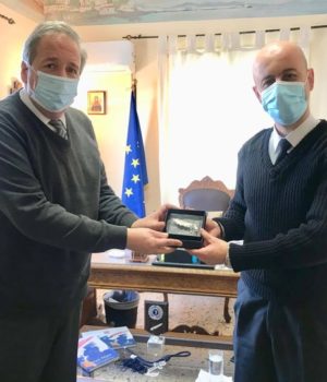 Σε μια σύντομη τελετή στο δημοτικό κατάστημα ο Δήμαρχος Οινουσσών Γεώργιος Δανιήλ εξέφρασε τα θερμά συγχαρητήρια και τις εγκάρδιες ευχαριστίες της Δημοτικής Αρχής, των ιστορικών φορέων της διασποράς, αλλά και της ανά τον κόσμο ναυτιλιακής οικογένειας της Αιγνούσας προς τον επί 3 ½ έτη «καπετάνιο» της ιστορικής Ναυτικής Σχολής του νησιού και επέδωσε αναμνηστικό έμβλημα του Δήμου.