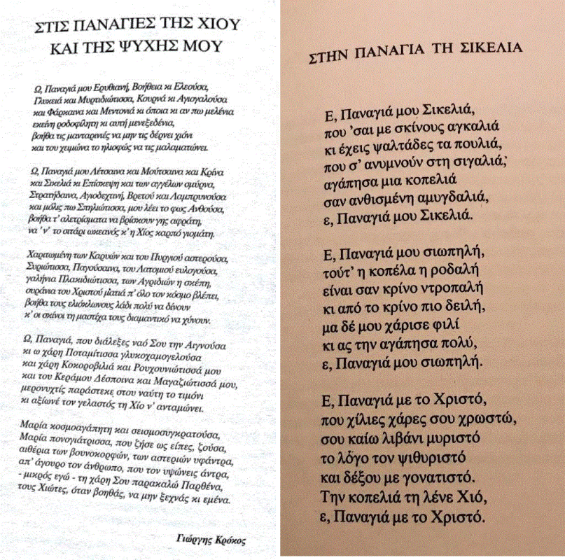 Η έκδοση ανοίγει με το ποίημα του Γιώργη Κρόκου, ενός ακάματου δασκάλου, ιεροψάλτη, λαογράφου που για το ποιητικό του έργο τιµήθηκε από την Ακαδηµία Αθηνών, από τη Γυναικεία Λογοτεχνική Συντροφιά, από τον Κύκλο του Ελληνικού Παιδικού Βιβλίου, από δήµους της χώρας µας και από πολλά πολιτιστικά και επιστημονικά σωµατεία όχι μόνο της γενέτειράς του, της Χίου, αλλά και όλης της χώρας.