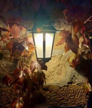 Αποφάσισε να πάρει το δεξί δρομάκι που της φάνηκε πιο φωτεινό. Και πάνω που έστριψε, είδε από μακριά το παλιό γνώριμο φαναράκι στην αυλόπορτα του περιβολιού της θείας να φέγγει αχνά μέσα από τις φυλλωσιές. Τι ανακούφιση!